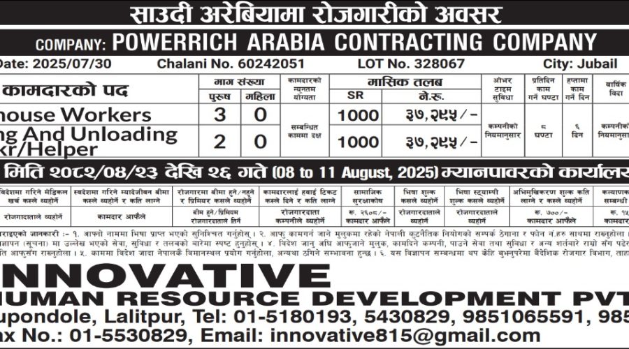 Innovative Human Resource Development HRD (P) Ltd., the objective of its to enable Nepali citizens to earn a decent living in foreign countries and to contribute to the country’s economy by way of dollar remittance through migrant workers and help solve the problem of unemployment.